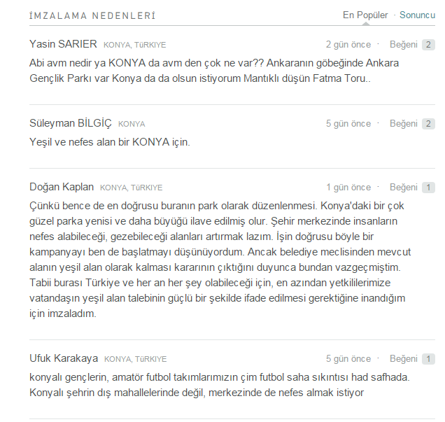 Konyalıların bu kampanyaya kısa zamanda ilgi göstermesi, halkın yeşil alan istediğini gösteriyor. İşte kampayaya destek olan insanların görüşleri:
